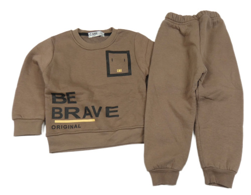 2Set - Hnědá teplá mikina s nápisy + tepláky CMK