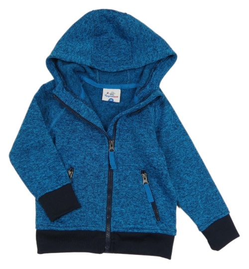 Modro-tmavomodrá melírovaná pletená propínací mikina s kapucí Topolino