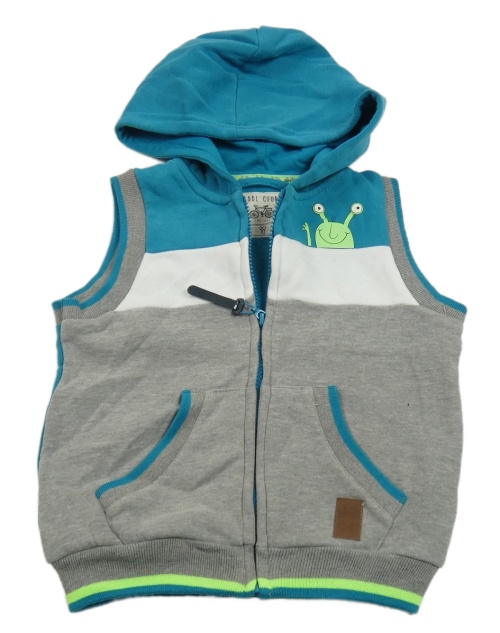 Šedo-bílo-modrozelená melírovaná propínací tepláková vesta s příšerkou a kapucí cooclub