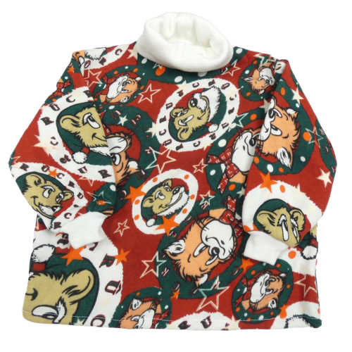 Červeno-zeleno-bílá vzorovaná mikina se zvířaty a rolákem