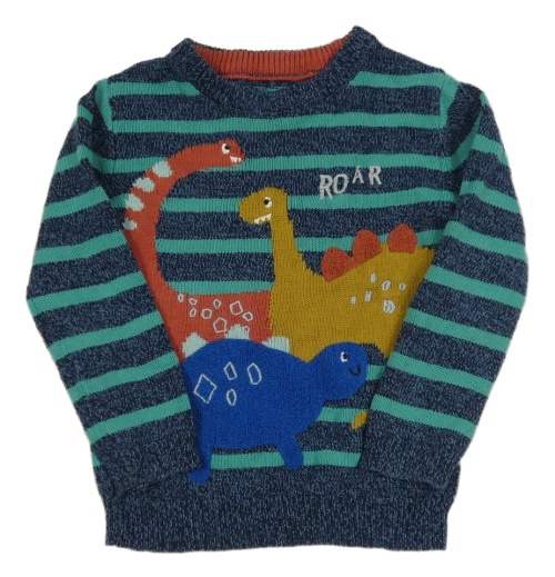 Tmavomodro-zelený pruhovaný overal s dinosaury Nutmeg