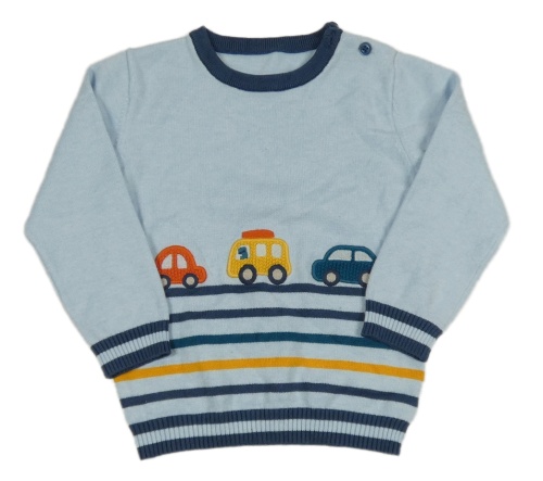 Světlemodro-tmavomodrý svetr s auty Nutmeg