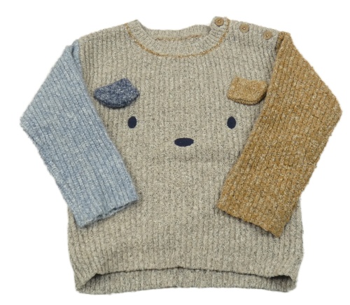 Béžovo-modro-hnědý žebrovaný svetr s medvědem Nutmeg
