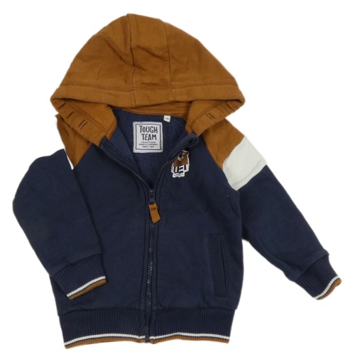 Tmavomodro-hnědo-bílá propínací mikina s bobrem a kapucí C&A