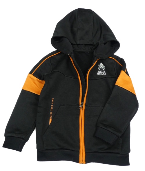 Černo-oranžová propínací mikina s potiskem a kapucí George