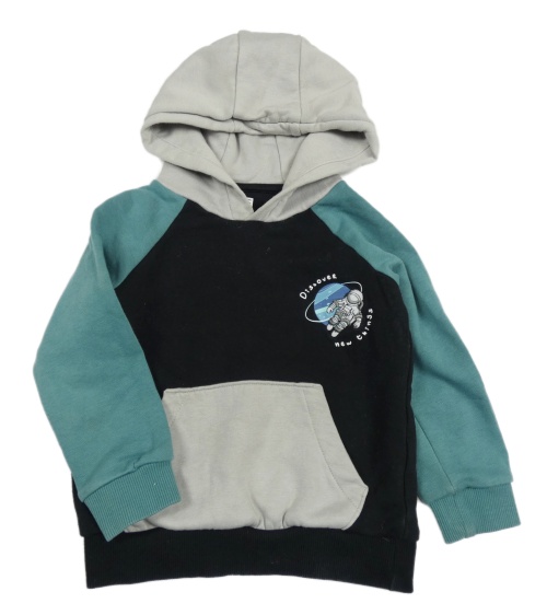 Černo-šalvějová mikina se kosmonautem a kapsou a kapucí F&F