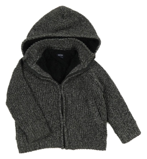 Tmavošedý melírovaný žebrovaný pletený propínací zateplený svetr s kapucí KIABI