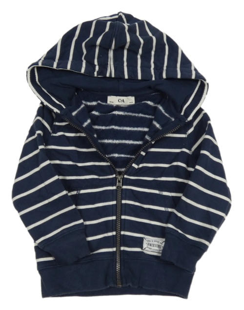 Tmavomodro-bílá pruhovaná propínací mikina s nášivkou a kapucí C&A