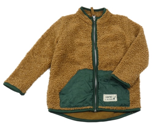 Hnědá huňatá podšitá propínací mikina se zelenou kapsou Pep&Co