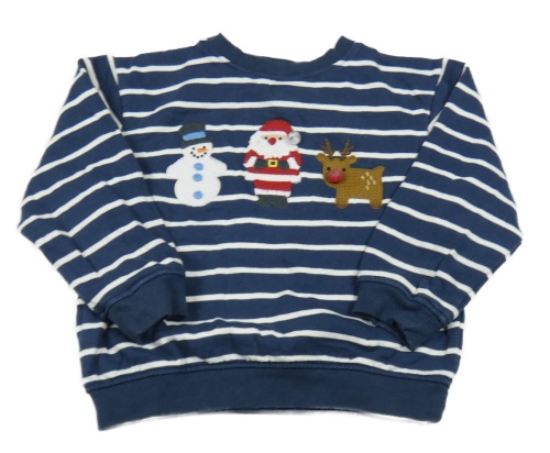 Tmavomodro-bílá pruhovaná oversize vánoční mikina se Santou a sobem a sněhuláčkem Next
