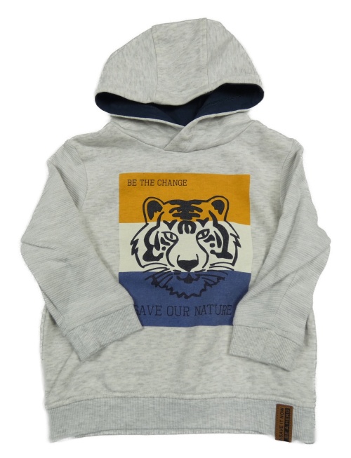 Světlešedá melírovaná mikina s tygrem a žebrovanými rukávy a kapucí Topolino