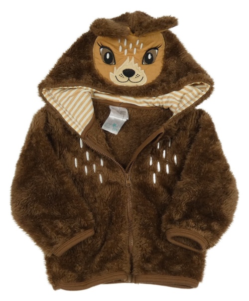 Hnědá chlupatá propínací mikina s kapucí - lišák