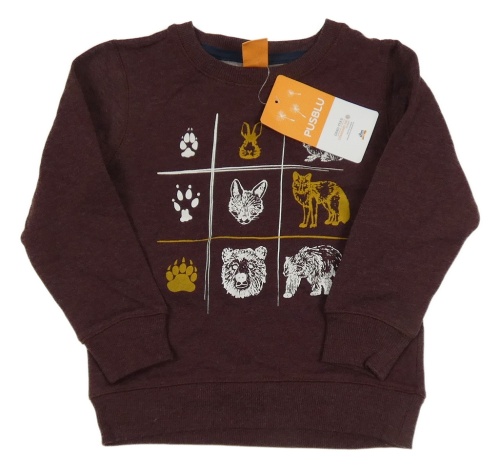 Mahagonová melírovaná mikina se zvířátky a stopami PUSBLU