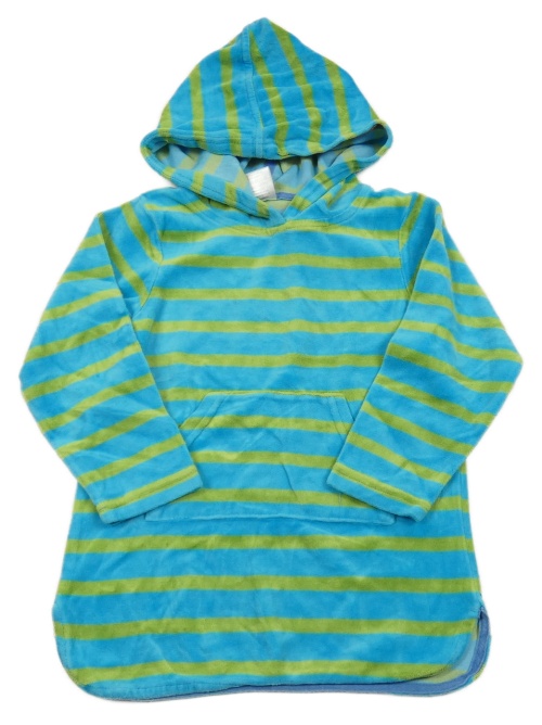 Azurovo-zelená pruhovaná sametová dlouhá mikina s kapucí