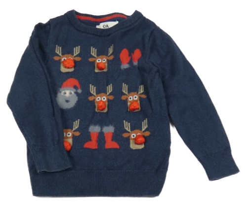 Tmavomodrý melírovaný vánoční svetr se soby a Santou C&A