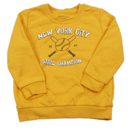Žlutá mikina s baseballovými pálkami a nápisem Primark