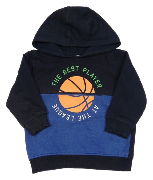 Tmavomodro-modrá mikina s míčem a nápisy a kapucí Topolino