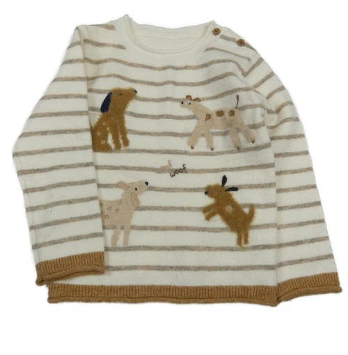 Nové - bílo-béžovo/šedo-hnědý pruhovaný svetr s pejsky Nutmeg