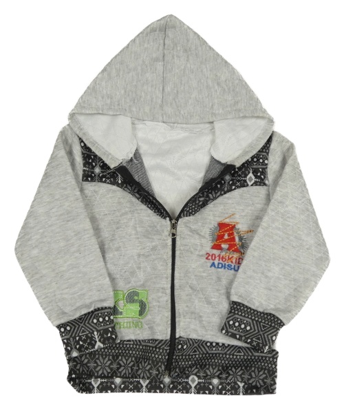 Šedo-černá melírovaná prošívaná propínací mikina s písmenky a vzorem a kapucí