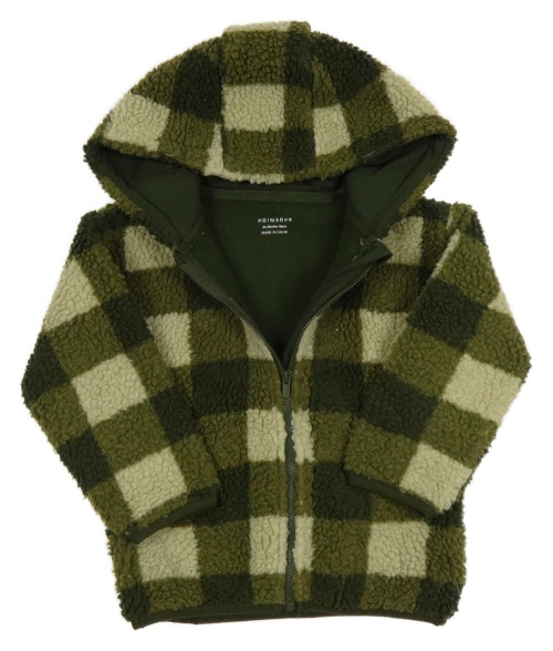 Khaki-olivová kostkovaná huňatá propínací mikina s kapucí Primark