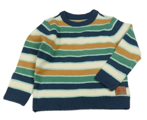 Smetanovo-tmavomodro-zeleno-okrový pruhovaný svetr Mothercare