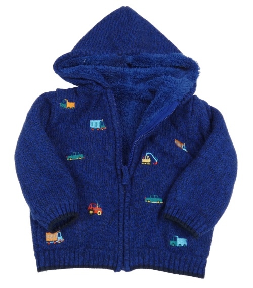 Tmavomodro-černý melírovaný propínací zateplený svetr s auty a kapucí Nutmeg