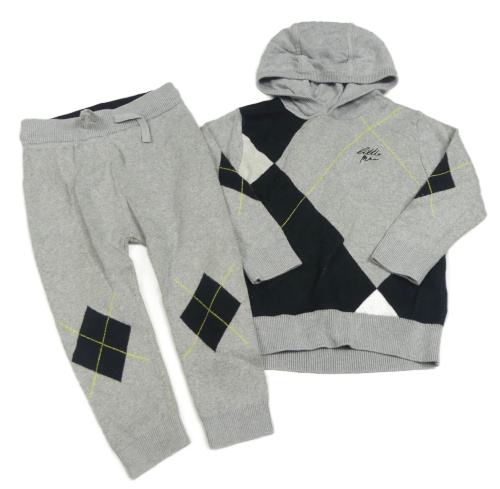 2set - Šedo-černý svetr s kárami a kapucí + pletené tepláky Next