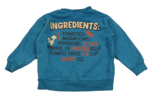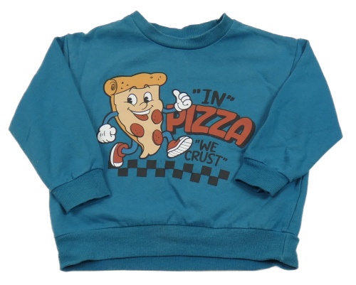 Petrolejová oversize mikina s pizzou a nápisy PL: Kids