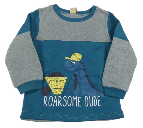 Petrolejovo-šedá melírovaná teplá mikina s dinosaurem X-MAIL