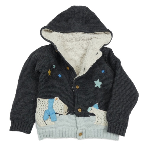 Tmavošedý propínací zateplený svetr s medvědem a kapucí M&S