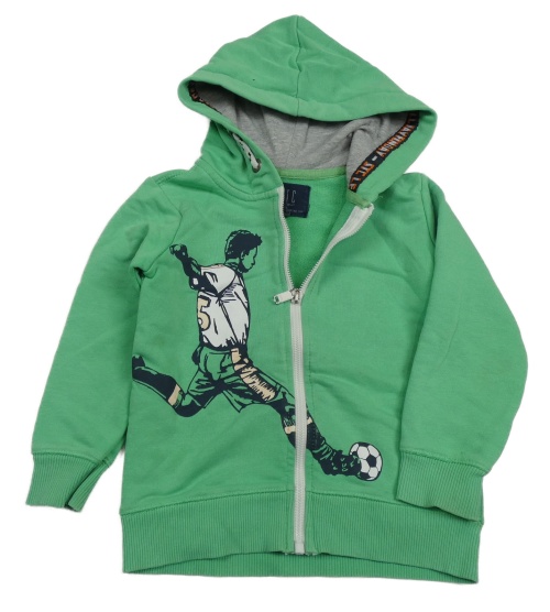 Zelená propínací mikina s fotbalistou a kapucí