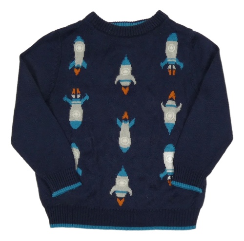 Tmavomodro-modrozelený pletený svetr s raketami M&Co
