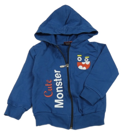 Tmavomodrá propínací mikina s nápisem a kapucí