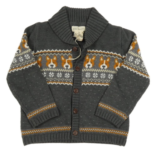 Tmavošedý propínací svetr se vzorem a pejsky Rorie Whelan