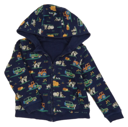 Tmavomodrá propínací oboustranná mikina s farmou a kapucí Jojo Maman Bébé
