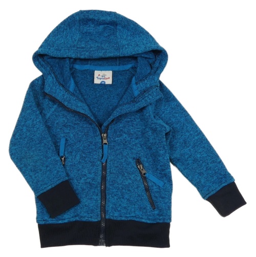 Modro-tmavomodrá melírovaná pletená propínací mikina s kapucí Topolino
