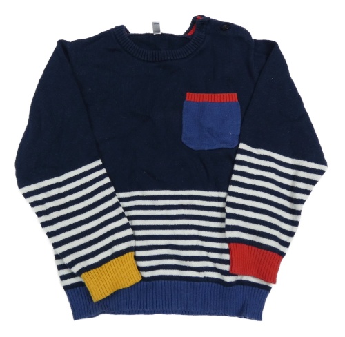 Tmavomodro-bílý svetr s pruhy a kapsou