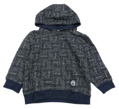 Tmavomodro-šedá melírovaná/vzorovaná mikina s nášivkou a kapsou a kapucí Topolino
