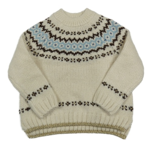 Smetanovo-hnědo-modrý vzorovaný svetr