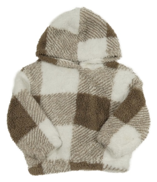 Hnědo-bílá kostkovaná chlupatá mikina s kapucí Shein