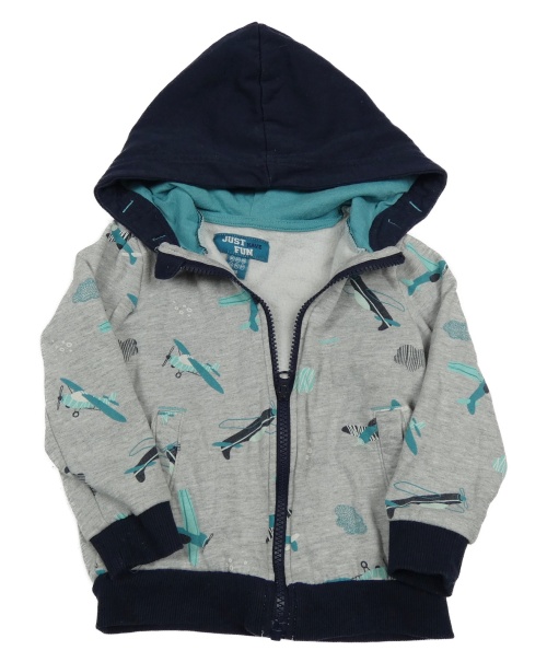 Šedo-tmavomodrá propínací mikina s letadly a kapucí Pocopiano