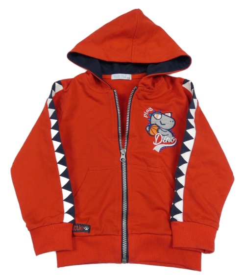 Červená propínací mikina s dinosaurem a kapucí