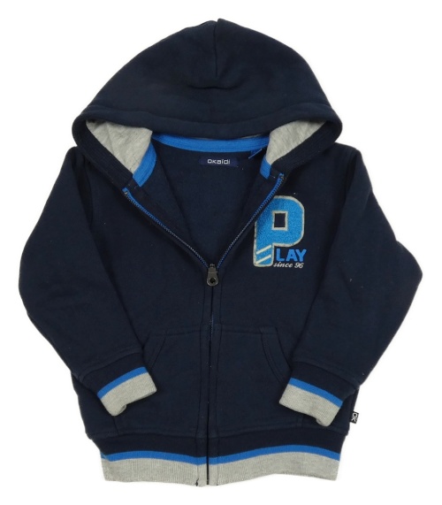 Tmavomodrá propínací mikina s písmenem a kapucí Okaidi
