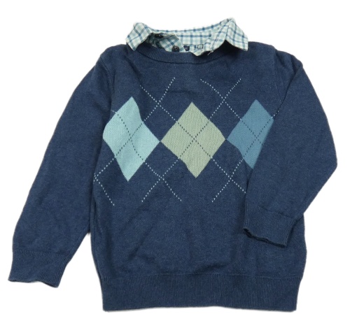Tmavomodrý svetr s kárami a košilovým límcem Next