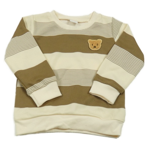 Béžovo-hnědá pruhovaná mikina s medvědem