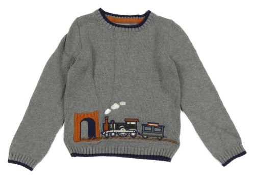 Šedo-tmavomodrý svetr s lokomotivou Jarvis Archer