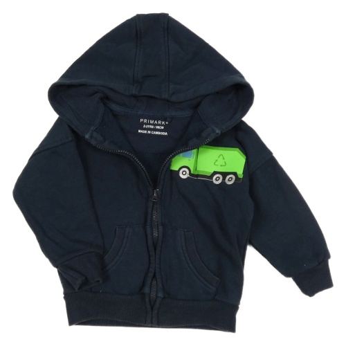 Tmavomodrá propínací oversize mikina s nákladním autem a kapucí PRIMARK