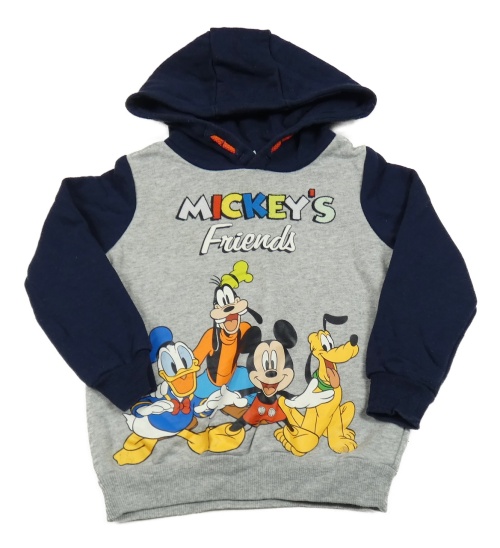 Šedo-tmavomodrá mikina s Mickeym a kamarády a kapucí Tu
