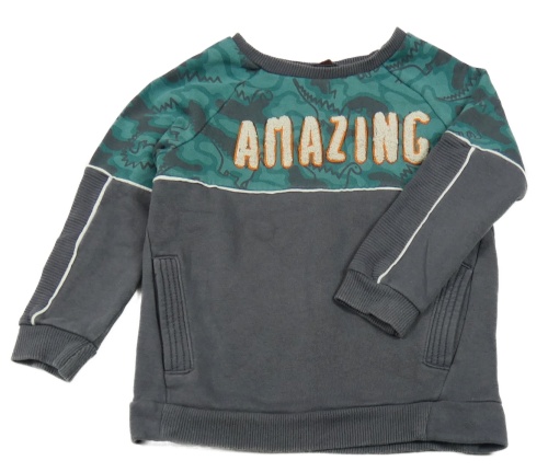 Tmavošedo-zelená mikina s dinosaury a nápisem George