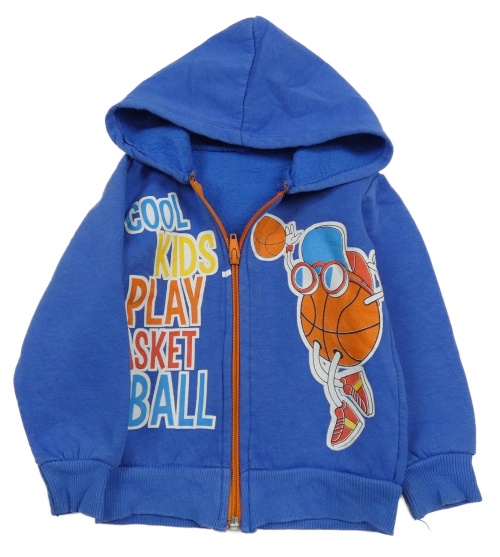 Cobaltově modrá propínací mikina s nápisy a míčem a kapucí